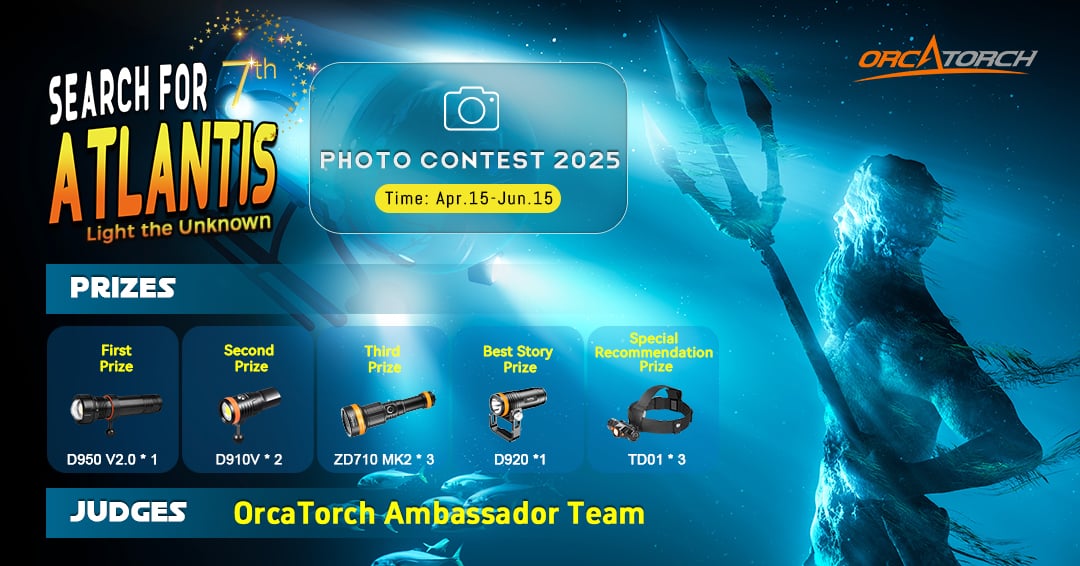 Примите участие в фотоконкурсе OrcaTorch!! Седьмой конкурс подводной фотографии "В поисках Атлантиды 2025" завершится 15 июня! Пригласите ваших клиентов и дайверов принять участие — шанс выиграть дайв-фонари и получить международное признание. Отличная возможность оживить вашу дайв-сообщество и прорекламировать ваш центр!
